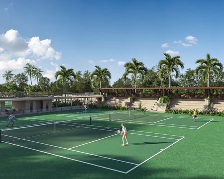 ¿Qué incluye? Canchas de tenis, gimnasio, piscina, range de prácticas y simulador, restaurantes vestidores / spa, canchas de pádel, canchas de tenis, canchas de futbol, pickleball, cafetería, cowork hoyo 19, kids club, teens club, pro shop, estética.