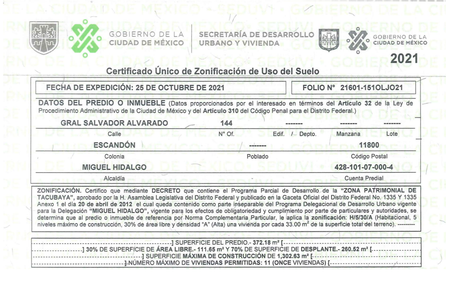 Uso de Suelo: H/5/30/A con ingreso al SAC Tacubayapara 8 niveles.Incluye proyecto con 31 viviendas de 45 m2Predio sin árboles