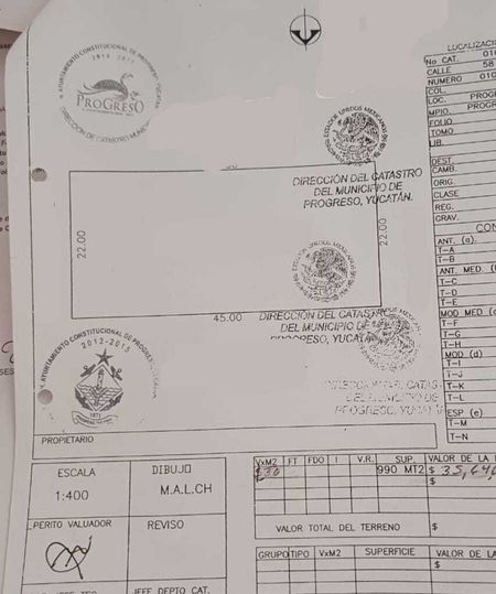 Es un terreno de forma regular y es propiedad privada, libre de gravamen, cuenta con calle y energia eléctrica a pie de lote, está ubicado en zona centrica, a un costado de una unidad habitacional, con todos los servicios cerca, tienda Dunosusa, tiendas y acceso muy fácil a la Carretera Mérida- Progreso.