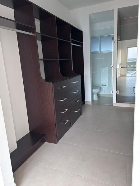 El departamento se distribuye en 3 recamaras cada una con baño y closet, adicional cuenta con un area de family room, amblio balcon, area de lavado y medio baño de visitas.