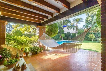 La casa también cuenta con una amplia terraza con vista al jardín, que incluye una alberca de 12 metros de largo, un cuarto de máquinas y paneles solares.