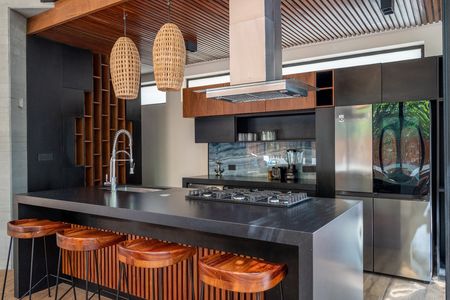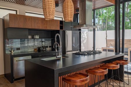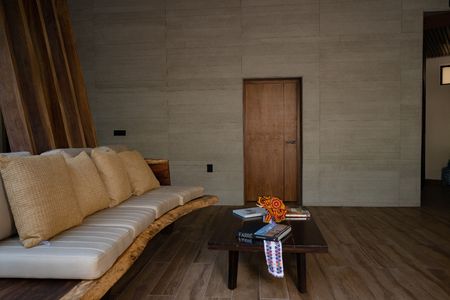 • Equipamiento de lujo: sistema inteligente Bticino, iluminación en acero y fibras naturales, aire acondicionado inverter y mobiliario en madera de parota.