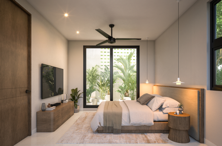 Recámara principal con clóset vestidor y baño completo