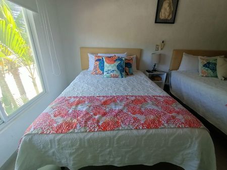 3 recámaras con aire acondicionado y abanico.