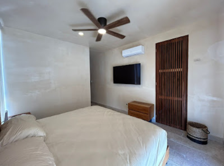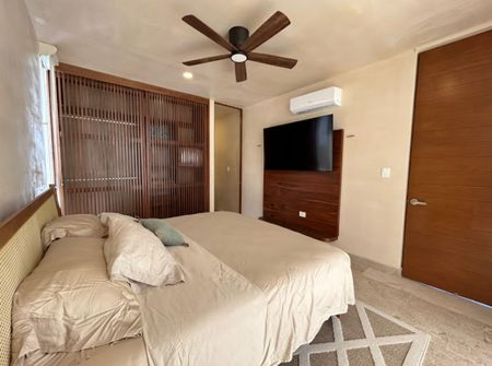 Recamara con baño propio, closet semivestido con acabado chukum y maletero