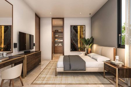 Recámara principal con clóset vestidor y baño