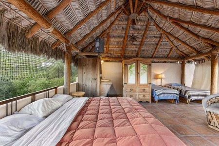 La propiedad principal incluye 1 recámara con aire acondicionado, 1 baño completo, cocina equipada, y un taller, además de una palapa dormitorio en la azotea con vista al mar, baño completo y una amplia terraza ideal para relajarse o disfrutar las puestas de sol.