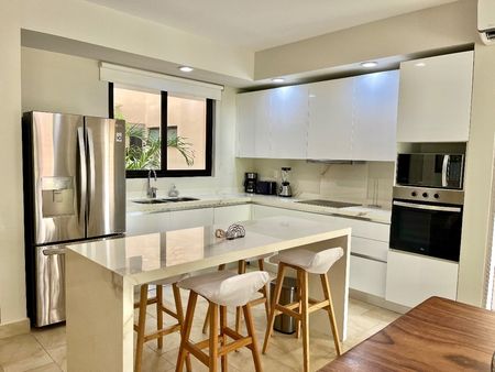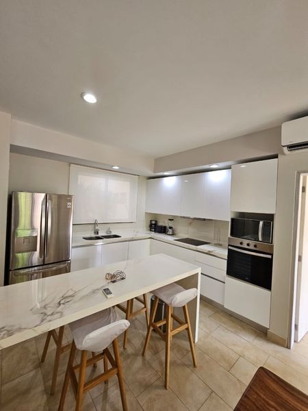 *Cocina* equipada con parrilla vitro cerámica, horno convencional, campana extractora, refrigerador doble puerta. Electrodomesticos