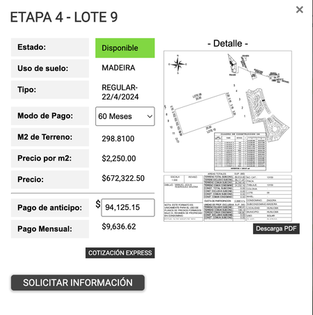 Cotiza tu Terreno y conoce los beneficios de financiamiento con un enganche desde el 15% y hasta 80 mensualidades.