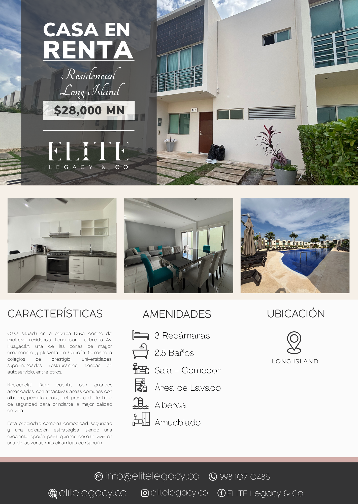 House located in the private Duke, within the exclusive residential Long Island, on Av. Huayacán, one of the fastest growing and most valuable areas in Cancun. Close to prestigious schools, universities, supermarkets, restaurants, convenience stores, among others.