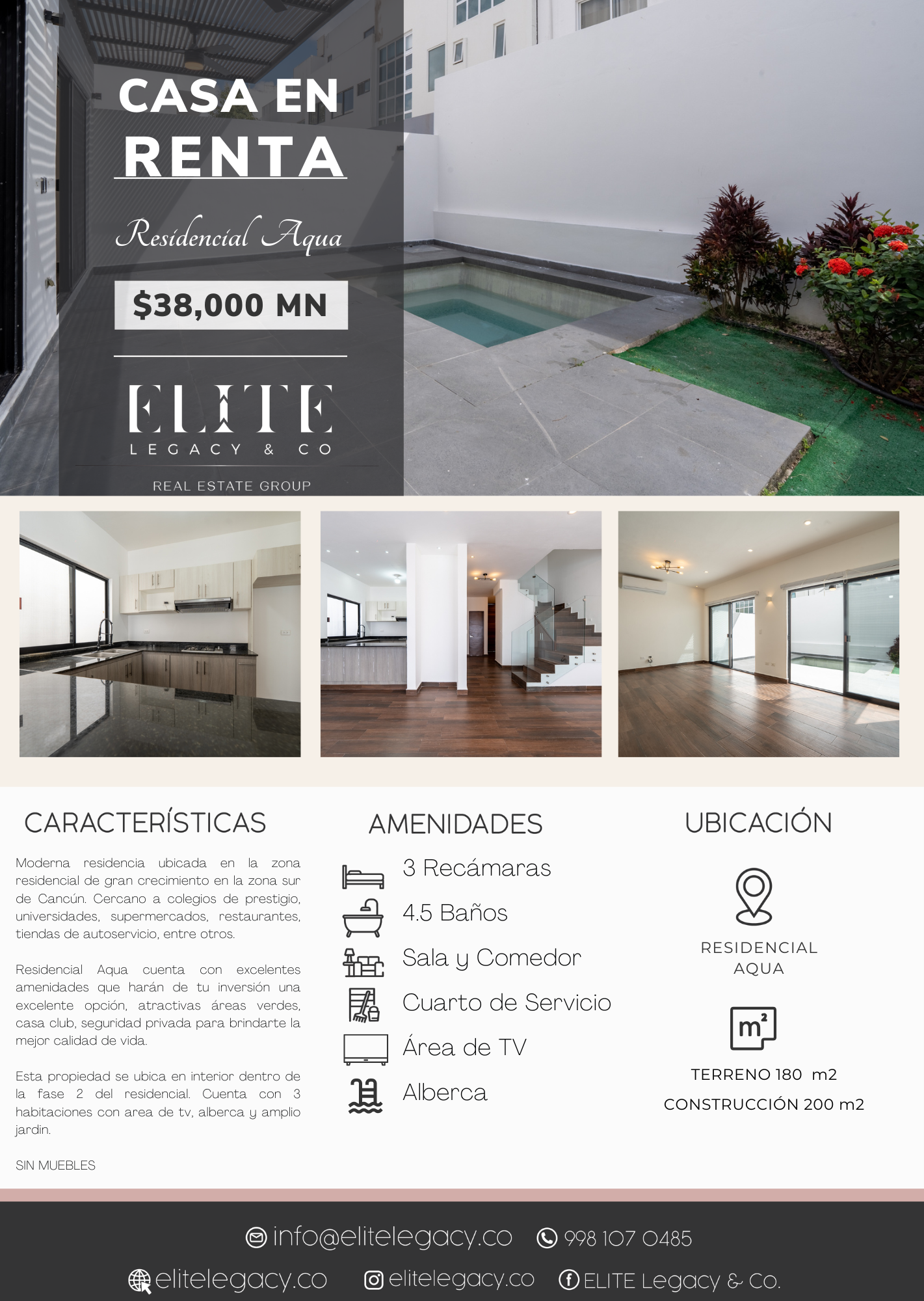 Security is paramount, with double access booths and 24/7 surveillance to ensure your peace of mind. This property is eligible for credit and represents a smart investment in one of the most sought-after areas of Cancun.Descubre esta moderna residencia ubicada en el exclusivo fraccionamiento Aqua Residencial, al sur de Cancún. Esta propiedad se encuentra en la Fase 2 del desarrollo y es ideal para quienes buscan calidad de vida en una zona de gran crecimiento. A pocos minutos de colegios de prestigio, universidades, supermercados, restaurantes y tiendas de autoservicio, esta casa ofrece comodidad y conveniencia.