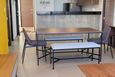 Sala y comedor interior con cocina integrada (a la vista)