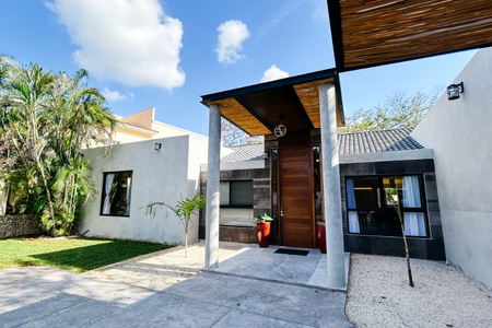 Sala, comedor, cocina, medio baño, jardín, alacena y garaje para 2 coches