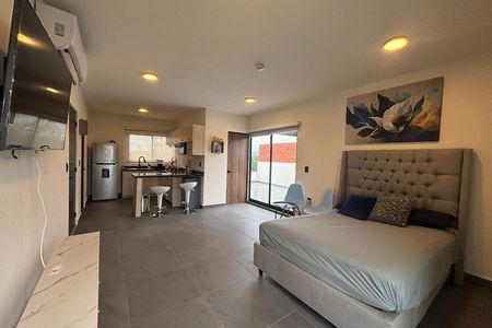 El departamento cuenta con 2 recámaras, un estudio, 3.5 baños, cocina integral de gran amplitud y dos áreas de comedor: una interior y otra en la terraza, perfecta para cenas al aire libre. Todas las áreas interiores disponen de aire acondicionado para garantizar una estancia placentera en cualquier temporada.