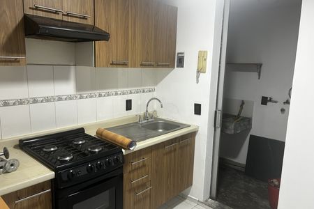 • Cocina integral en blanco, moderna, amplia y funcional, con alacenas generosas y espacio de trabajo bien distribuido.