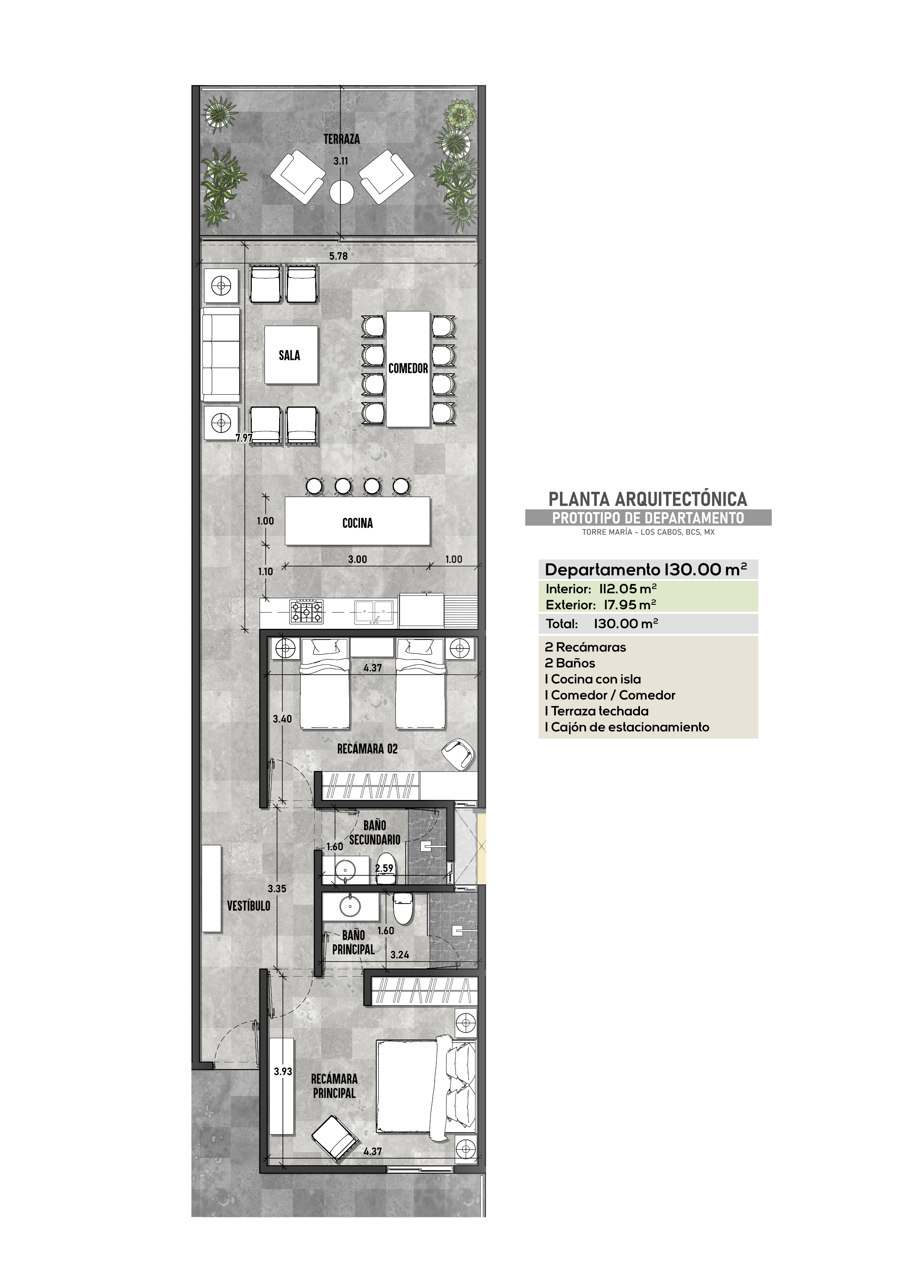 With stunning sea views and the vibrant city, this elegant 2-bedroom, 2-bath condominium in Torre María redefines the concept of luxury living on the coast. Located just 5 minutes from the Cabo San Lucas Marina, its unbeatable location offers immediate access to the best restaurants, bars, and attractions in the area.