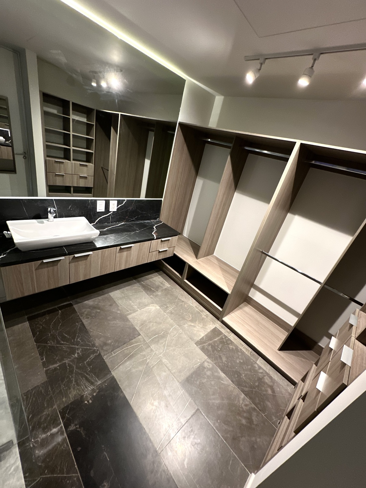 * Elegant natural stone flooring.